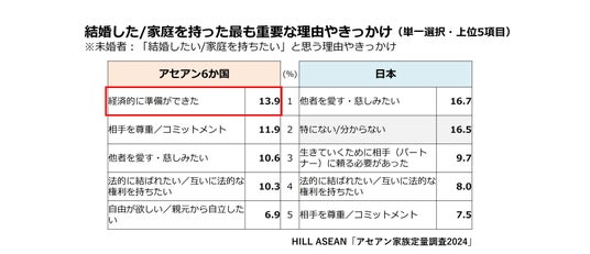 ・また、結婚した/家庭を持った理由・きっかけとして、アセアンでは「経済的に準備ができた」がトップに。