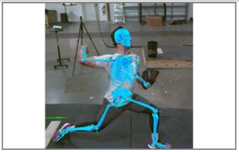 反射マーカー等のマーキングを必要とせず、複数台のハイスピードカメラ映像を元に身体形状、特徴点を独自のアルゴリズム(ディープラーニング)を用いて計算し動作解析を行う最新マーカーレスモーションキャプチャーシステム。