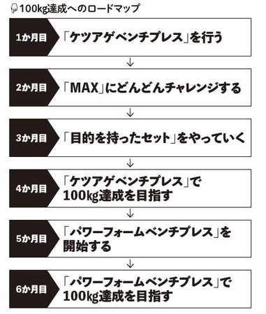 「しっかりと課題を決め、それをクリアして、次の課題に進む。そうすることで、必ず100kgは達成できます。また、既にベンチ歴が長い方、例えば挙げられる重量が現在95kgで100kgの壁に当たっている方は、そこに来るまでの過程で『クリアしなければいけない課題』をやらずに飛ばしてきています。その課題を明確にし、クリアすることにより、必ず100kgの壁を乗り越えることができます」(KE-TAさん)