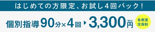 個別指導90分×4回分を特別価格の3,300円(税込)でお試しいただけます。