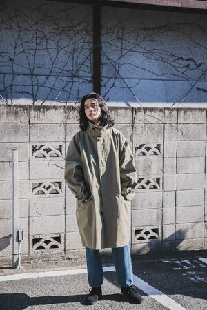 今回、現行モデルには無い「3/4コート」というモデルをベースにし、大ぶりでオーバーコートのように、がばっと着用できるようなサイズ感に仕上げました。
