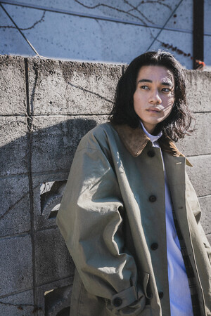また生地の特性上、かなり固いので絶妙なオーバーシルエットが保たれる点もポイントで、カラーは、特徴的な光沢感のある玉虫オリーブを採用。