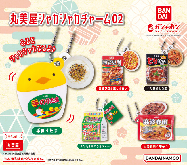 丸美屋食品工業株式会社が製造・販売する「麻婆豆腐の素」や「手のりたま」など、おなじみの商品を再現した「丸美屋シャカシャカチャーム02」(1回300円・税込、全5種)を2023年7月第5週より順次、全国のカプセル自販機にて発売いたします。