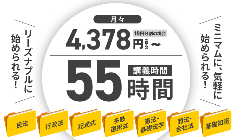 圧倒的に無駄を削り試験合格に必要な情報のみを提供する講座に仕上げました。55時間で行政書士試験合格に必要な知識を学習することが可能です。