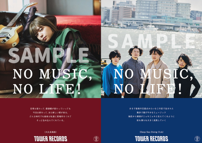 タワーレコードでは、意見広告シリーズ「NO MUSIC, NO LIFE. @」(よみ:のーみゅーじっくのーらいふあっと)の第2弾アーティストに大比良瑞希とDeep Sea Diving Clubの2組が決定しました。