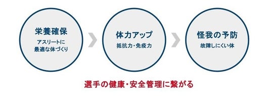 ・メニュー監修:三幸学園がスポーツ栄養学に基づいて、選手に最適なメニューを監修。