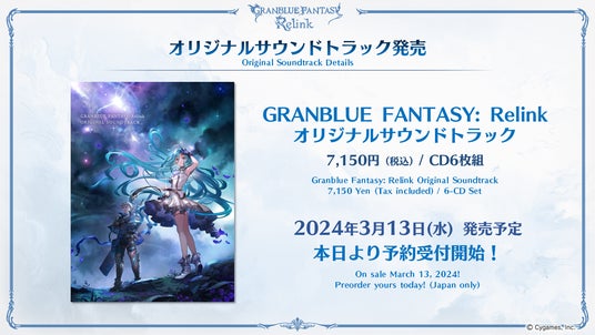 2024年3月13日(水)に「GRANBLUE FANTASY: Relink オリジナルサウンドトラック」発売!