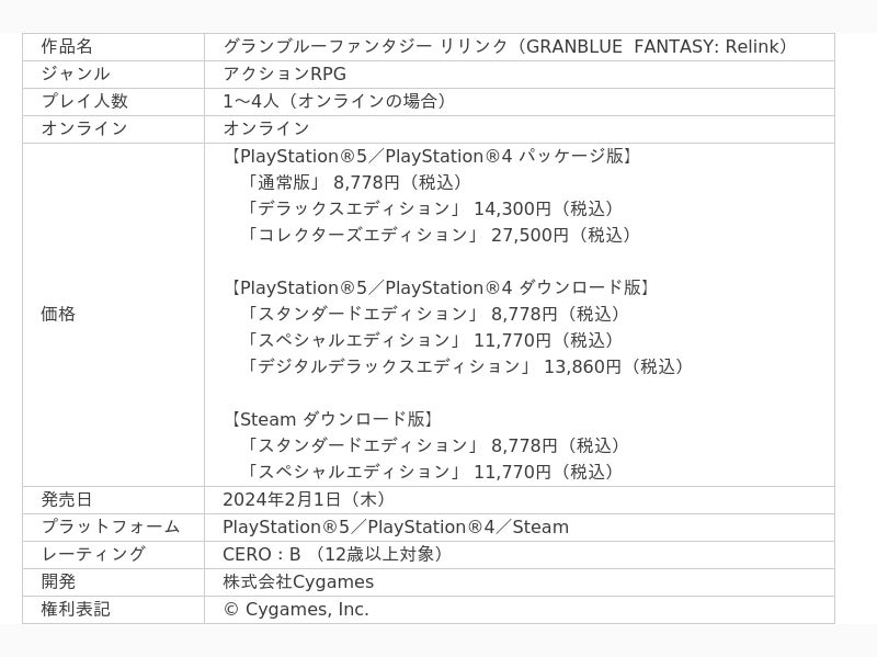 ゲームの企画・開発・運営事業を展開する株式会社Cygames(以下、サイゲームス 本社:東京都渋谷区、代表取締役社長:渡邊耕一)は、PlayStation(R)5/PlayStation(R)4/Steam向け新作アクションRPG『グランブルーファンタジー リリンク(以下、リリンク)』について、東京ビッグサイトで開催中の「グラブルフェス2023」のステージにて最新情報を多数公開いたしました。