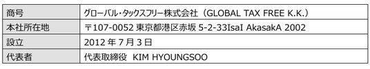 グローバル・タックスフリーは、2005年の設立以来、アジア初の免税手続き代行事業者として外国人向けタックスリファンドサービスを展開してまいりました。現在は韓国を中心にシンガポール、日本へと事業を拡大し、約15,000以上の加盟店ネットワークを有するアジア最大規模の免税手続きサービス事業者へと成長しており、今後は、訪日観光客向けに免税分野における最大規模のアプリおよびサービスの提供を目指してまいります。