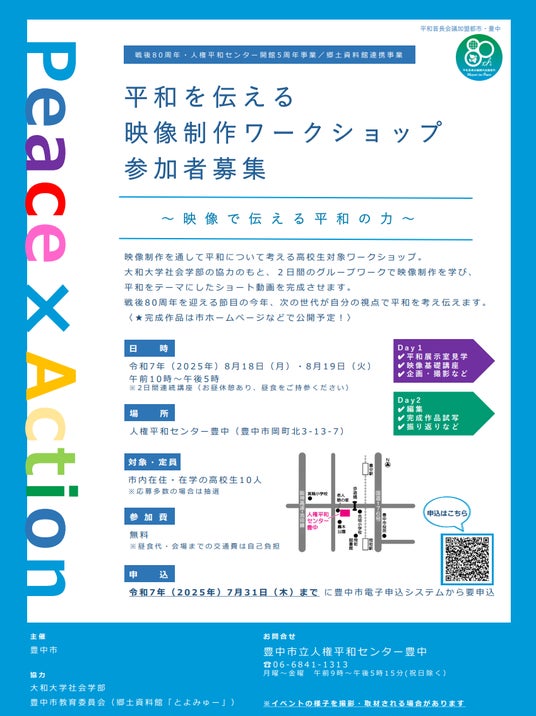 その一環として戦争を経験していない世代である高校生が、映像制作を通じて平和について学び、発信する取り組みとして「Peace×Action~映像で伝える平和の力~」を実施します。