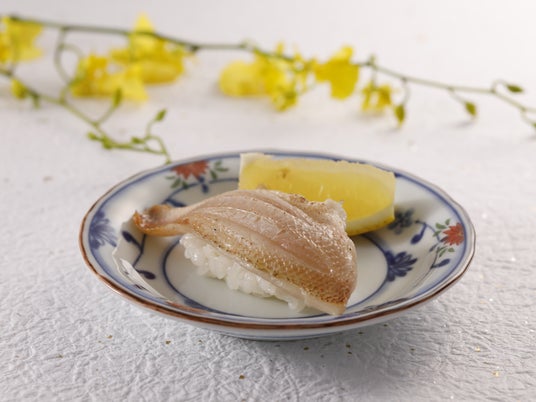 「のどぐろ」は、“白身のトロ”とも呼ばれる高級魚で、上品な脂の甘みと、とろけるような口当たりが特長です。ほどよくのった脂と、素材本来の旨みを楽しめる贅沢な一貫です。
