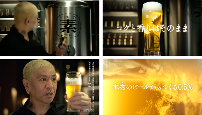 アサヒビール株式会社(本社 東京、社長 塩澤賢一)は、アルコール分0.5%の“微アルコール”ビールテイスト飲料『アサヒ ビアリー』の新TVCM「ビアリーの素」篇を4月12日(火)から、全国で放映します。今回の新TVCMも、広告キャラクターに“ダウンタウン”の松本人志さんを起用し、『アサヒ ビアリー』の特長である本物のビール由来のコクや香りを訴求します。
