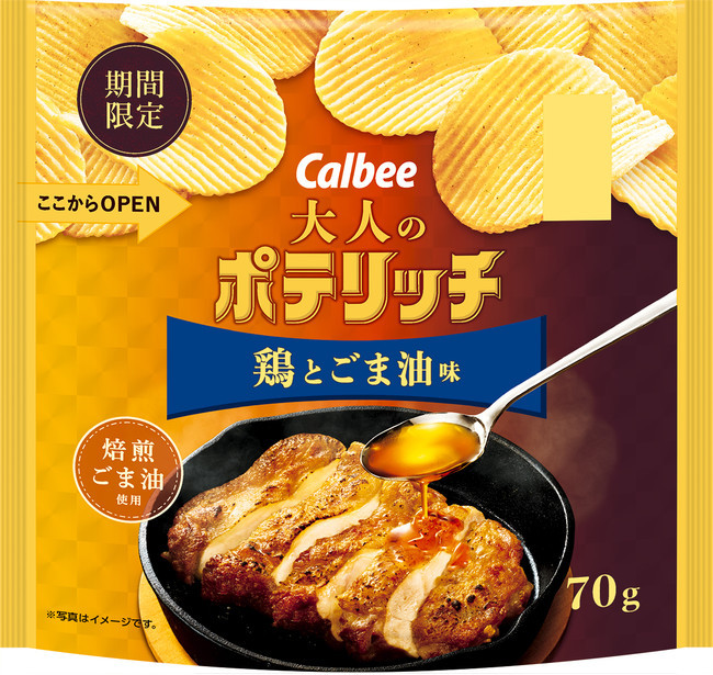 カルビー株式会社(本社:東京都千代田区、代表取締役社長:伊藤 秀二)は、素材の組み合わせにこだわった濃厚リッチな味わいが楽しめる「大人のポテリッチ」シリーズより、新商品『大人のポテリッチ 鶏とごま油味』を2022年3月28日(月)から、全国のコンビニエンスストア限定で発売します。※期間限定、2022年5月上旬終売予定。