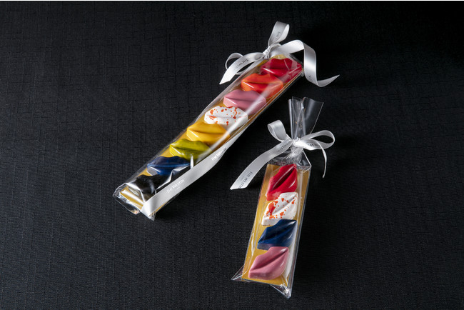 バレンタインシーズンを華やかに彩るチョコレート。思わず街へ持ち歩きたくなうようなピンクのハンドバッグ「シャルマン ローズ」は、ルビーチョコレートとホワイトチョコレートで作られた、持ち手や装飾まで全てお召し上がりいただけるサプライズな一品です。バッグの中には、コスメのようなカラフルな色合いの唇型のチョコレート「レーブル コロレ」8種をしのばせました。ミルク・ブロンド・ブラック・ホワイトなど様々な味わいのチョコレートと、フルーツやナッツの掛け合わせで、一つずつ違った表情をお楽しみいただけます。また、極上のなめらかさと魅惑的な色合いが美しい「パルフュメ」や、ナッツやドライフルーツを贅沢にトッピングした華やかな「タブレットチョコレート」もご用意し、当ホテルならではの上品な甘さと濃厚な味わいをお楽しみいただけます。