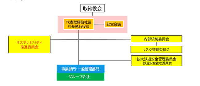 気候変動の緩和に関しては、連結環境目標として掲げたCO2排出量の削減について、サステナビリティ推進委員会の中で進捗管理や分析・対応策検討の協議を行うほか、気候変動への適応に関しては、鉄道事業における物理的リスクの低減に向け、事業計画の中で激甚化する気象災害への対策を強化、推進しています。