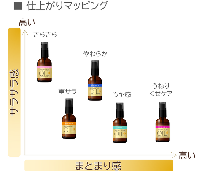 ◆ 髪質やダメージ度合い、好みの仕上がりに合わせて使える5種のラインアップ。