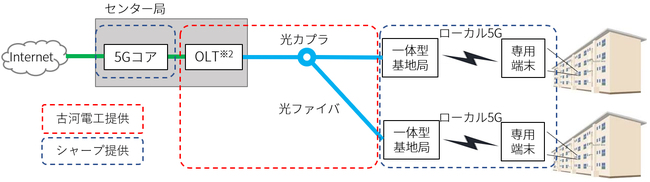 古河電工のPONシステム(※1)とシャープのローカル5Gシステムが連携集合住宅などに、設備投資を抑え省スペースで高速・大容量の無線通信環境を構築可能