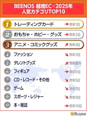 BEENOS 株式会社(本社:東京都品川区、代表取締役:直井聖太、以下BEENOS)は、海外向け購入サポートサービス「Buyee(バイイー)」 の2025年1月から12月までの購買データに基づいた「越境EC×ヒットランキング2025」を発表いたします。