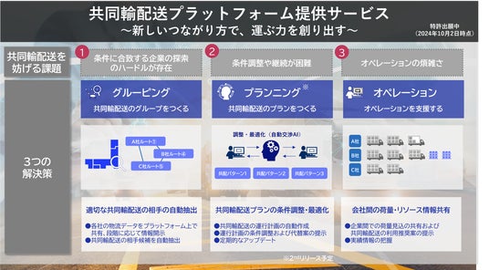 NECは、2024年10月にサービス提供を開始した「共同輸配送プラットフォーム」において、期間限定でお得なキャンペーン価格でのサービス提供を実施いたします(注1)。本プラットフォームは、複数企業の荷物を同一トラックで運搬する共同輸配送を支援します。