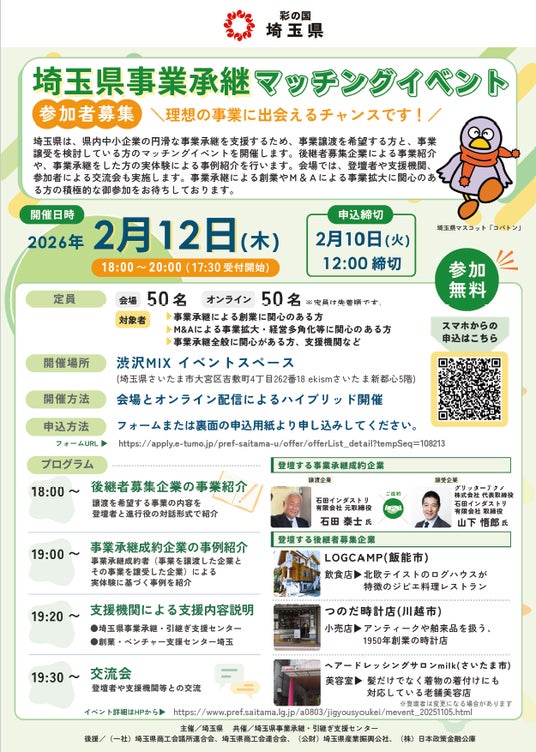共催:埼玉県事業承継・引継ぎ支援センター