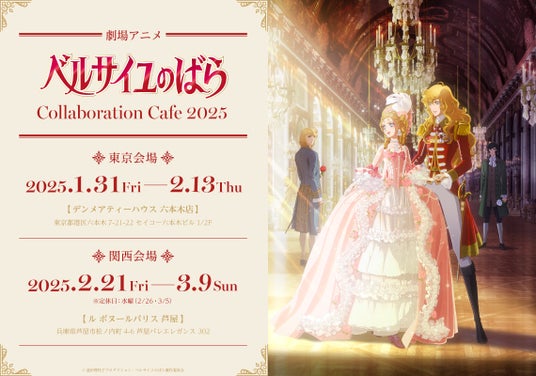 株式会社TORICO(本社:東京都千代田区 代表:安藤拓郎)は2025年1月31日(金)より劇場公開される劇場アニメ『ベルサイユのばら』の上映を記念して、上映開始同日1月31日から東京「デンメアティーハウス 六本木店」、2月21日から兵庫「ル ボヌールパリス 芦屋」にてマンガ展主催企画として劇場アニメ『ベルサイユのばら』Collaboration Cafe 2025を開催いたします。