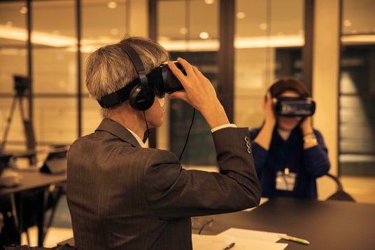 VRゴーグルを装着し、当事者視点を体験している様子
