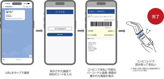 紙の払込票の代わりに、LINE上で電子バーコードを送付し、コンビニ決済をデジタル化いたします。 ユーザーはスマホ1つでコンビニ支払いが可能になることに加え、企業の印刷・郵送コストをなくします。