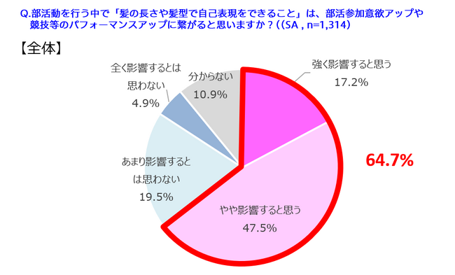 髪での自己表現が「部活参加意欲やパフォーマンスに好影響」と6割以上が回答!世代別では、20代は7割以上と最多!