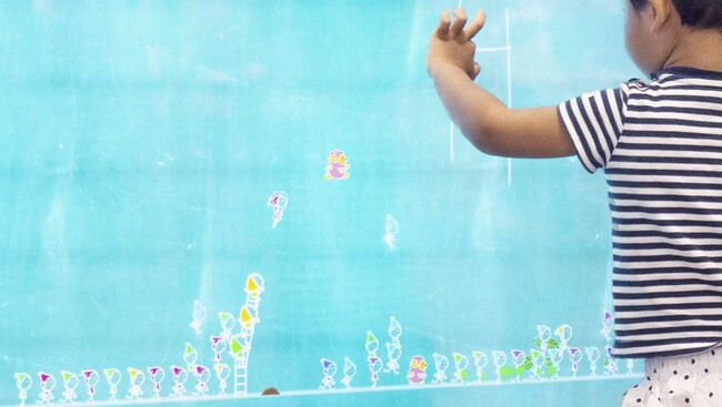 チームラボは、ゆめタウン徳島に、タッチしたり線を引くとインタラクティブに世界が変化する「こびとが住まう黒板」を常設展示します。遊びの中で、他者と関わり、共に創り上げる作品。10月6日(木)から公開。