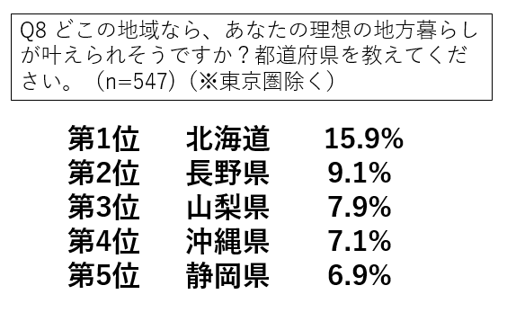 3) 理想の移住先1位は北海道。2位以降は都心からのアクセスが良い地域に人気が分散