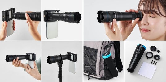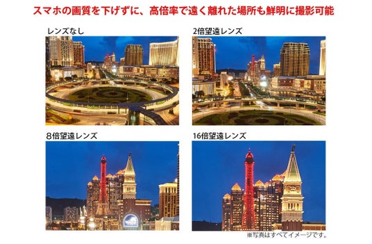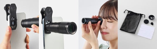スマートフォンのカメラレンズに合わせて挟むだけで、望遠撮影ができるスマートフォン用レンズです。倍率は2倍・8倍・16倍の3種類から選べます。