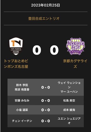 2023-02-25 一般社団法人Tリーグ ノジマTリーグ 2022-2023シーズン 公式戦 2月25日開催 トップおとめピンポンズ名古屋 vs 京都カグヤライズ オーダー発表 Tweet 2月25日(土)15:00試合開始 トップおとめピンポンズ名古屋 vs 京都カグヤライズ 会場:豊田合成エントリオ(愛知県) 対戦オーダーが発表されました。 企業プレスリリース詳細へ PR TIMESトップへ 公式ツイッター Follow @Straightpress 最新情報をTwitterで受け取ろう! 公式フェイスブックページ 最新情報をFacebookで受け取ろう! 前の記事 一覧へ戻る 次の記事