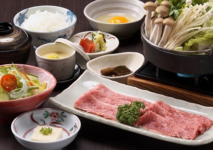 ・「飛騨牛」を使ったすきやきでお昼休憩。地元の食の魅力を満喫します。