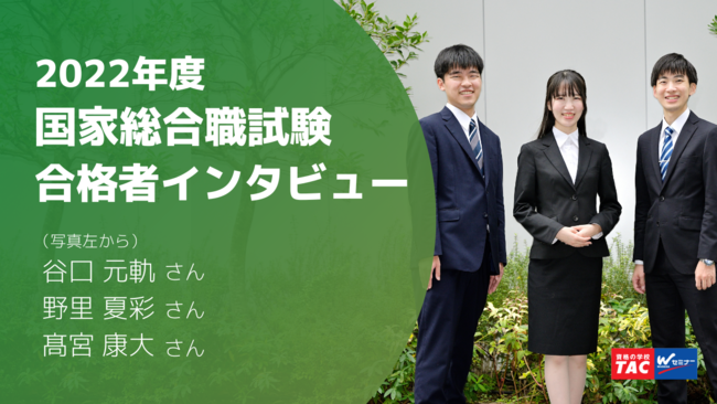 国家総合職とは、国家行政の中枢を担う幹部候補。政策の企画立案、法案の作成、予算編成などで活躍することが期待されます。今回は、2022年度国家総合職試験に合格したTAC・Wセミナーの内定者3名に、官僚をめざしたきっかけや、TAC・Wセミナーの活用方法、これから実現したいことなどをお聞きしました。