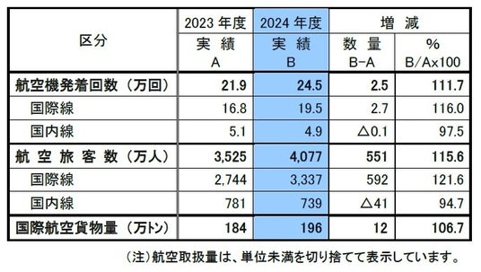 2025年度の航空取扱量見通しは、発着回数及び旅客数ともに2024年度を上回ると想定しております。国際線の発着回数及び旅客数は中国及び東南アジア路線を中心とする増便が見込まれることから、2024年度を上回ると想定しました。国内線の発着回数及び旅客数は、需要は底堅いものの、2024年度冬ダイヤにおいて生じた減便が通期化する影響から2024年度をやや下回るものと想定しました。