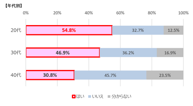 「感じる」のは20代は過半数、40代は3割で世代差あり!