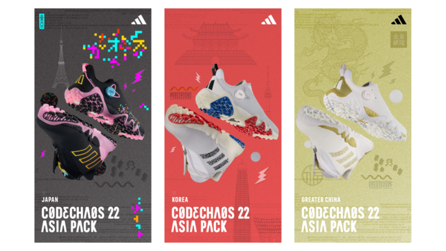 アディダスゴルフは、デザインもパフォーマンスも全てがアディダスゴルフ史上最もディスラプティブ(破壊的)なゴルフシューズ「コードカオス22」の限定版「ASIA PACK(アジア・パック)」を発表します。ASIA PACKは、日本・韓国・グレーターチャイナという、アジアのキーとなるエリアをモチーフとした3モデルがラインナップ。それぞれの街並みやカルチャーからインスピレーションを受けてデザインされたこの特別なコードカオス22は、旧正月を祝して、1月20日(金)にアディダス公式オンラインストア(https://shop.adidas.jp/golf/)やアディダス 公式アプリ(https://shop.adidas.jp/mobileapps/)、および一部アディダス直営店にて順次発売いたします。