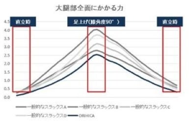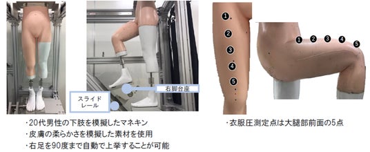 そのスラックスロボットを使用し、「LIFE FIT PANTS by THE THIRD SUITS(R)」の衣服圧を測定。その結果、一般的なスラックスと比べ衣服圧が低く、着心地が良いことが証明されました。