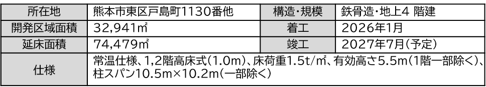 本事業においては、2023年11月10日に熊本市と「半導体関連産業の集積に向けた産業用地整備に関する協定」を締結しており、今後、半導体を中心とした産業集積がさらに進み、倉庫需要も高まっていくことが予想される中、県経済や地域の発展に貢献してまいります。