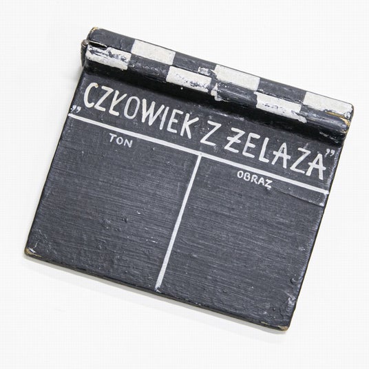 『鉄の男』(1981年) 撮影に使用したカチンコ 日本美術技術博物館Manggha所蔵