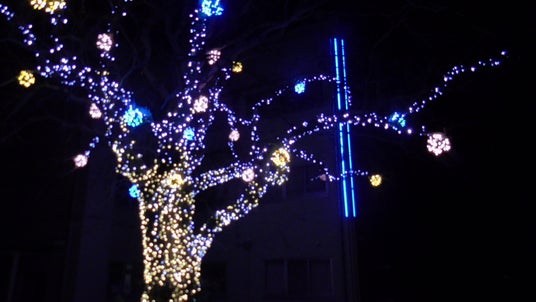 今回の研究を地域の方々にも広く周知し、「地震防災」への理解を深めてもらうため、1月14日から2月28日の夜間に、「LED光ライトシステム」を虹色に点灯するとともに、「ムクロジの木」のイルミネーションも願いを込めて点灯(17時から21時)します。