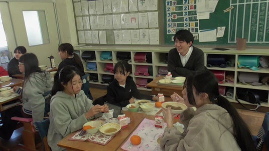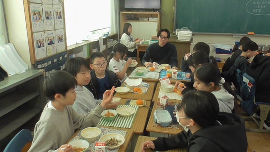 授業後には研究員らと給食を共にする交流の時間も設けられました。