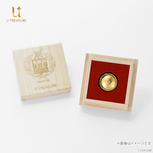 このたびの新作は「大逆転裁判」シリーズ10周年を記念して製作された「第二ボタン」です。塗和也監修のもと、帝都勇盟大學の学生服のボタンをジュエリー職人が丁寧に再現し、ボタン裏に帝都勇盟大學の文字と、成歩堂、亜双義のそれぞれの名前を刻印しました。