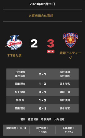 の試合結果は2‐3で琉球アスティーダが勝利しました。