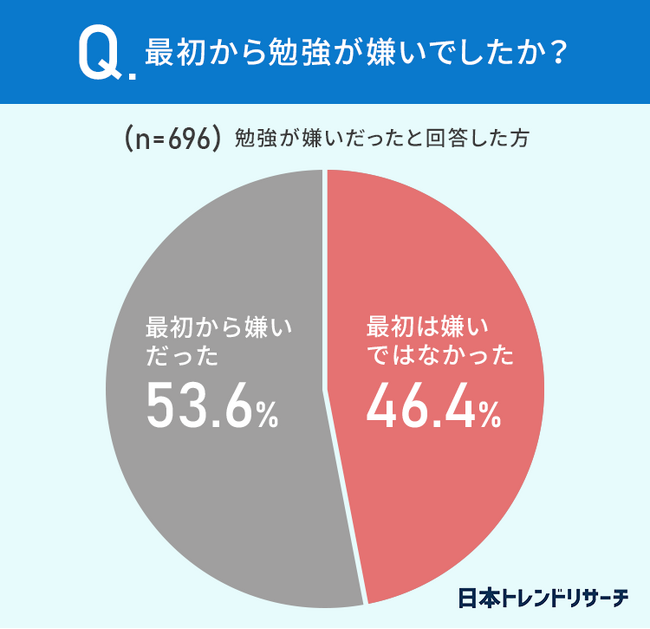 46.4%と、およそ半数近くの方が「最初は勉強が嫌いではなかった」と回答しています。