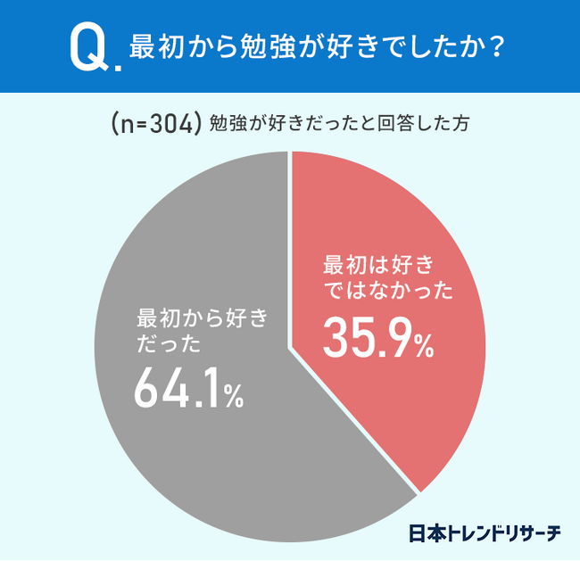 学生時代勉強が好きだった35.9%が「最初は好きではなかった」と回答しています。
