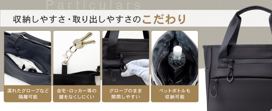 PC収納や防水機能を備え、新社会人の通勤から自転車通勤まで幅広く対応。
