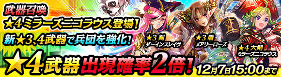 <★4 大剣ミラーズニコラウス登場!★4 出現確率2倍キャンペーン! 詳細>