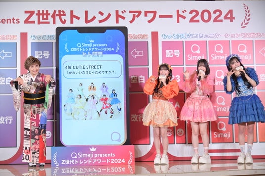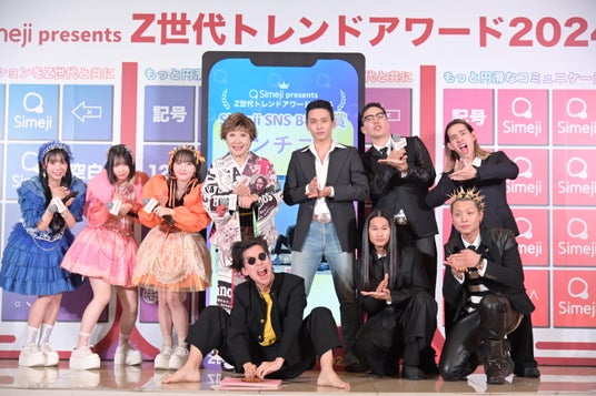 バイドゥ株式会社(本社:東京都港区、代表取締役社長:Feng Jiang)が提供するキーボードアプリ「Simeji」が主催する「Simeji presents Z世代トレンドアワード2024」が11月28日(木)都内にて行われ、今年Z世代が選ぶ”年間トレンド大賞”及び、ヒト・モノ・コト3部門の大賞、各ランキング結果を発表いたしました。イベントには、大人世代を代表し小林幸子さん、Z世代を代表しCUTIE STREETより川本笑瑠さん・桜庭遥花さん・増田彩乃さんの3名、そして「ギリハッピー」で年間トレンド大賞とコト部門大賞を受賞したKOMOREBIさん、特別枠 Simeji SNS BUZZ賞を受賞したメンチニキさんが登場いたしました。