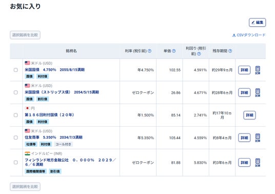 お気に入り機能を使えば、気になる銘柄を登録し、現時点の価格や利回りを簡単にチェックできます。